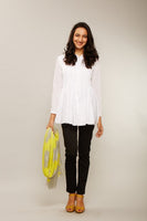 Soft cotton shirt with front detailed with hand ruching and soft granddad collar. Hidden button placket Relaxed elegance.