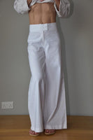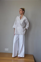 High waisted Palazzo linen trousers with a sophisticated but comfortable fit.