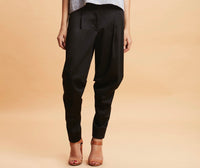 Jodhpur trousers in black stretch popeline with pleats at the knee and a relaxed yet sophisticated fit.