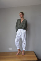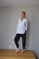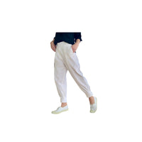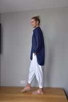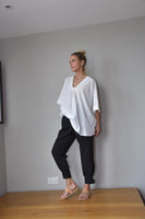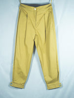 Trousers in stretch popeline, front pleats with cuff at trouser hem and front pleats.